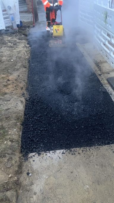 Wir übernehmen den kompletten Einbau – von der Vorbereitung des Untergrunds über das fachgerechte Ausbringen des Mischguts bis hin zur finalen Verdichtung.